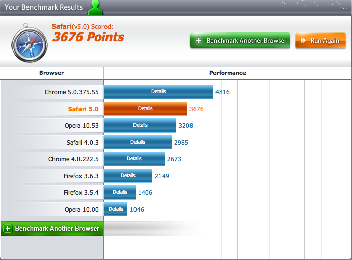 Safari 5ではJavaScriptのを含め、様々なパフォーマンスが改善される!ということでSunSpider ベンチマーク等を試してみました。