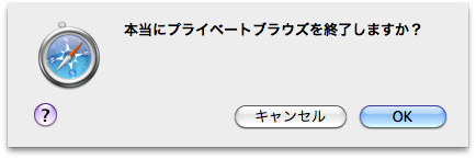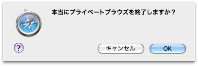 このアイコンをクリックすることによりプライベートブラウズをオフにすることが出来ますが、その場合のみアラートが出るようになっています。